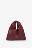 Burgundy leather top-handle bag from The Row. The Bindle shoulder bag is made in leather with a single seam, draped handle, and single interior pocket.