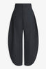 Grey petal pants from Alaïa. The Wool flannel petal pants are made in merino wool flannel in a curved shape with a full leg, slashes open on the sides complete with the signature Alaïa dart details at the back.