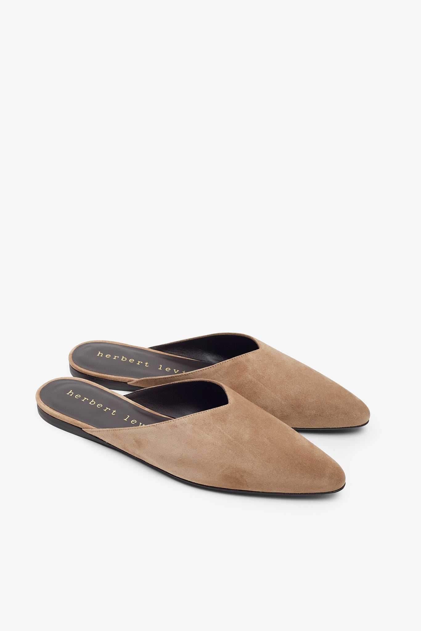 Brown suede mules from Herbert Levine. The Homebody mules are made from suede with pointed toes.