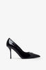 Black patent leather pumps from Alaïa. The Le Coeur pumps are made of patent leather with a tonal 3D heart on the pointed toes, set on a 90mm stiletto heel.