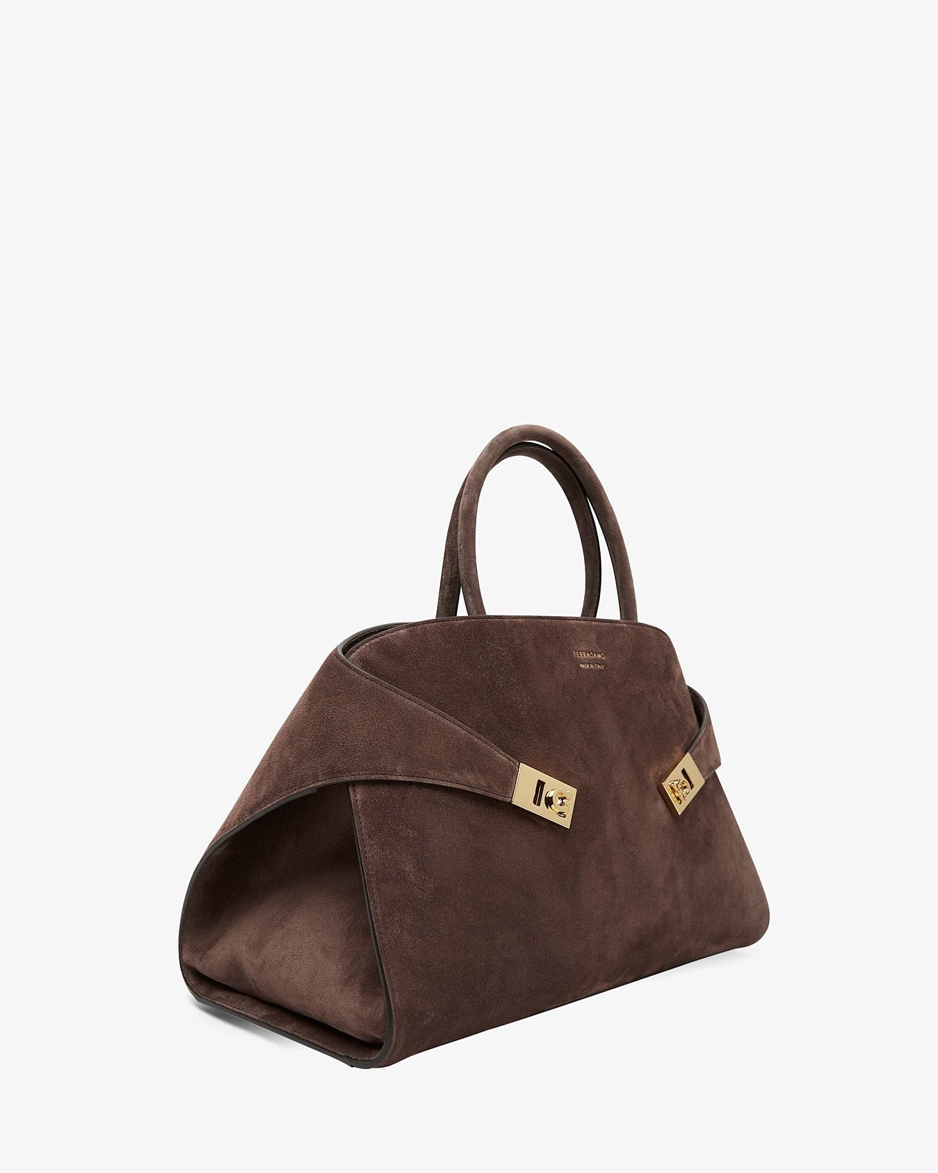 Hug small brown suede top handle bag