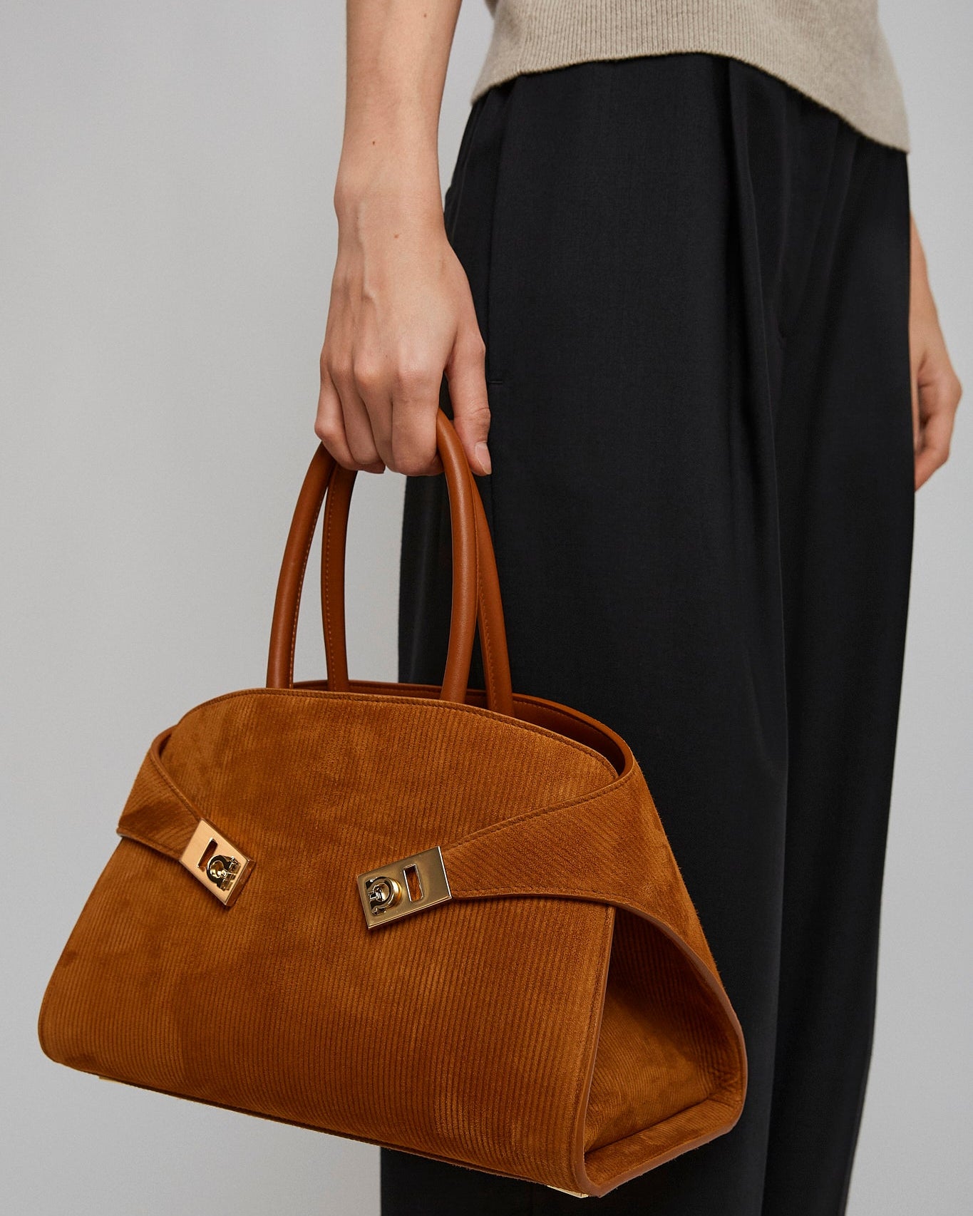 Hug S light brown suede top handle bag