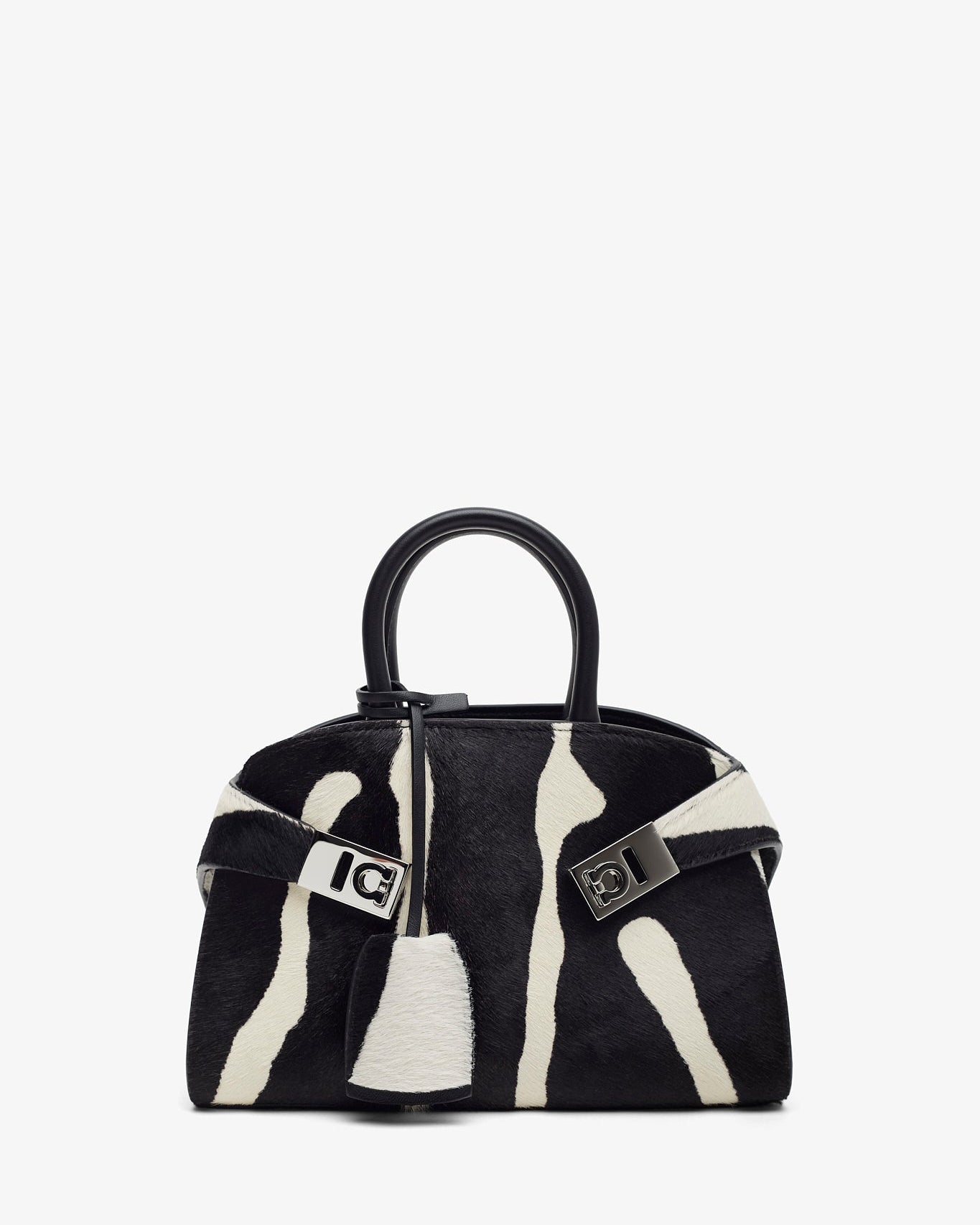 Hug mini white and black top handle bag
