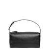 Black leather mini bag from The Row. The 90’s black leather bag is made of smooth nappa leather with silver detailing, softly rounded edges, leather piping and is complete with adjustable slim leather strap.