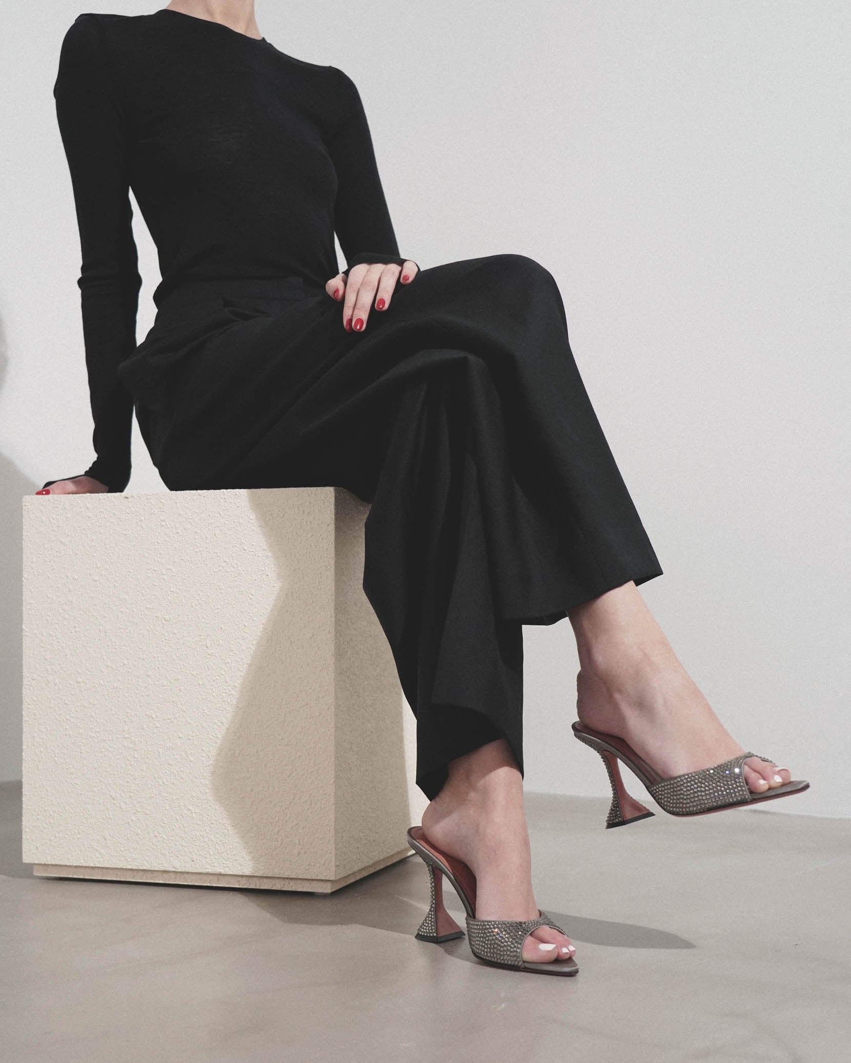 Caroline 95 slipper dark grey crystal mules