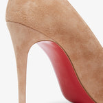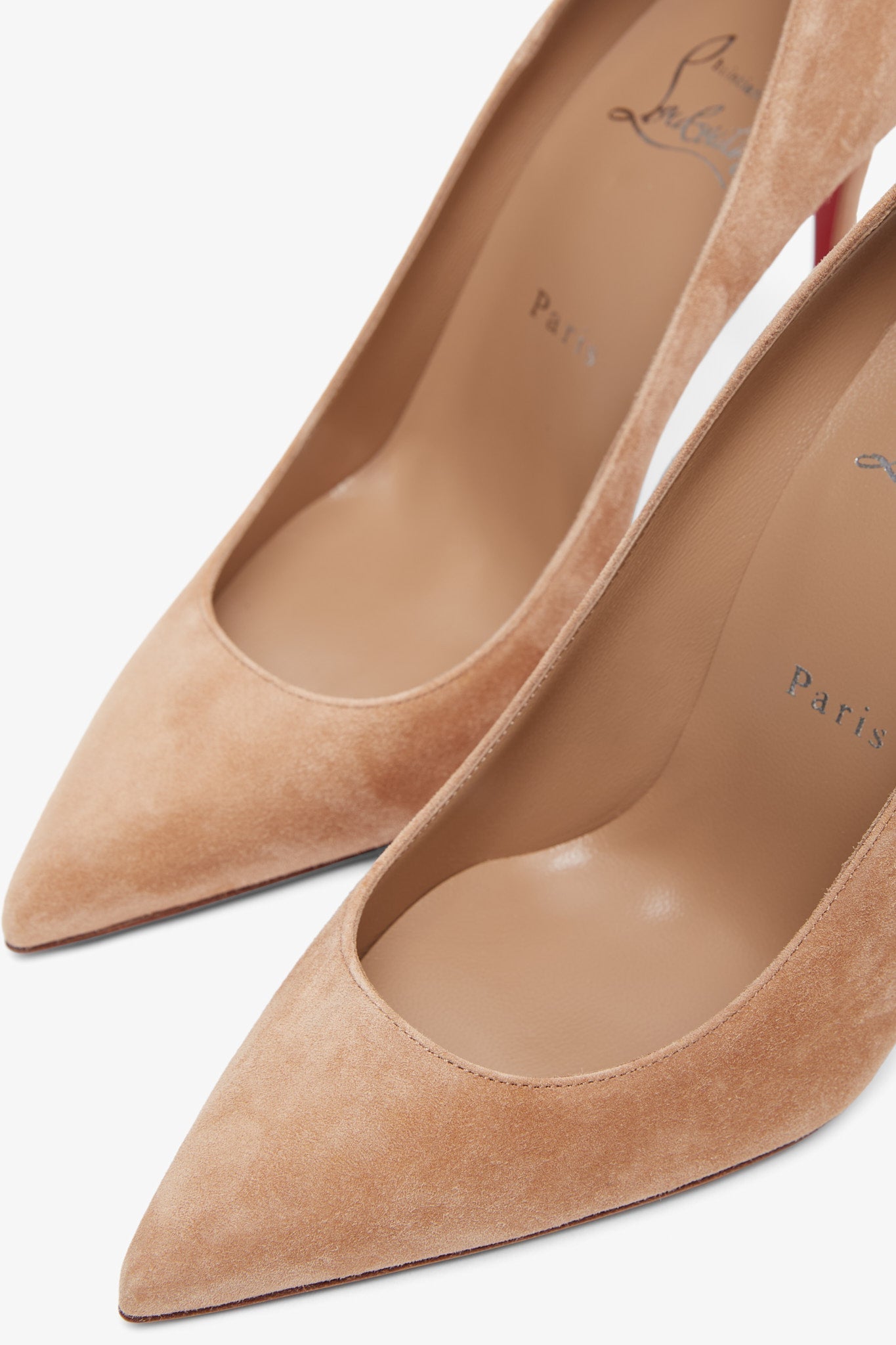 Brown suede pumps from Christian Louboutin. The Kate is made of suede, featuring a pointed toe and is set on a 100mm slim stiletto heel.