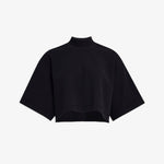 Black loose fit T-shirt, knitted from a light weight cotton with mock neck and square short sleeves.