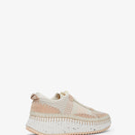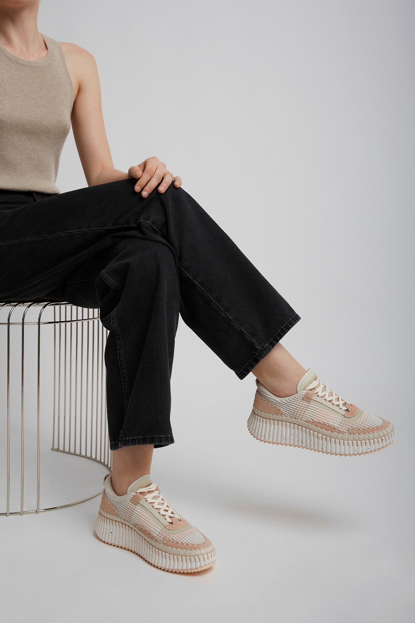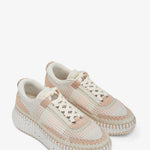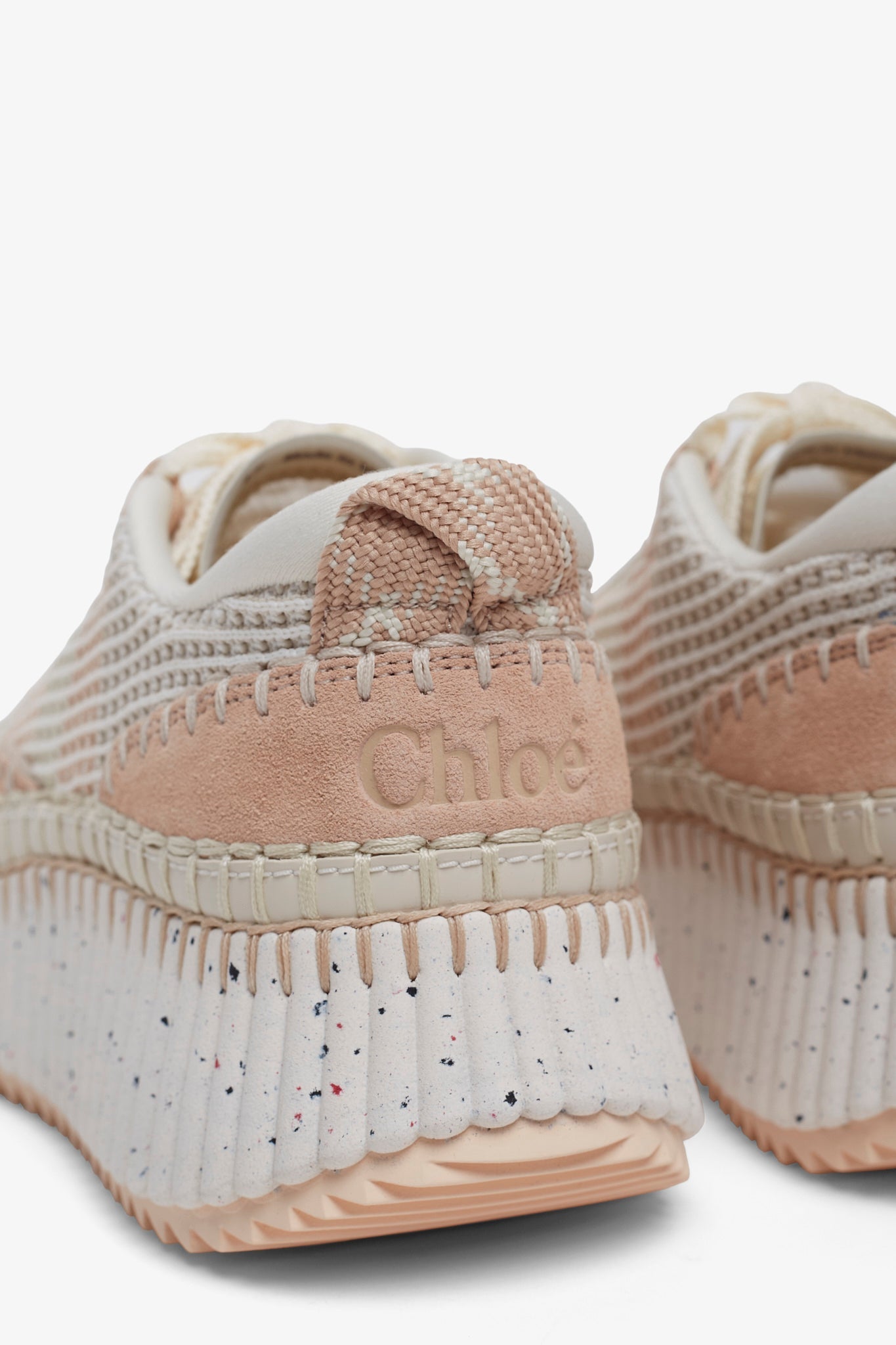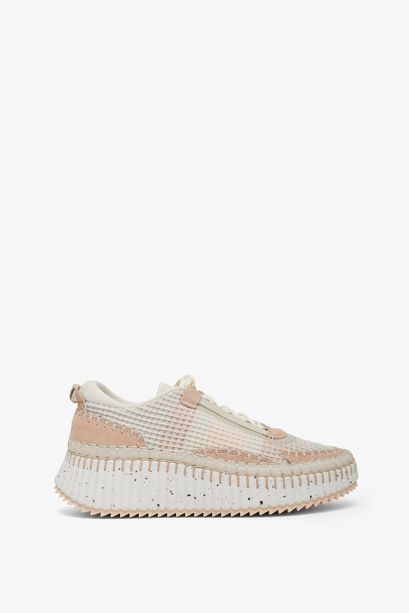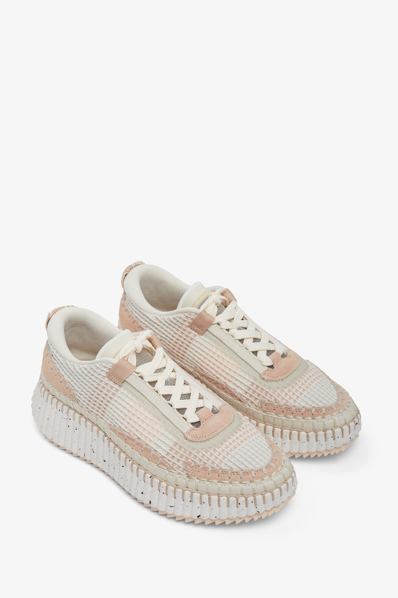 Light pink sneakers from Chloé. The Nama sneakers are made of leather featuring a hand-stitched upper, set on a contrasting ridged sole. This unisex sneaker is complete with the Chloé logo on the back for signature touch.